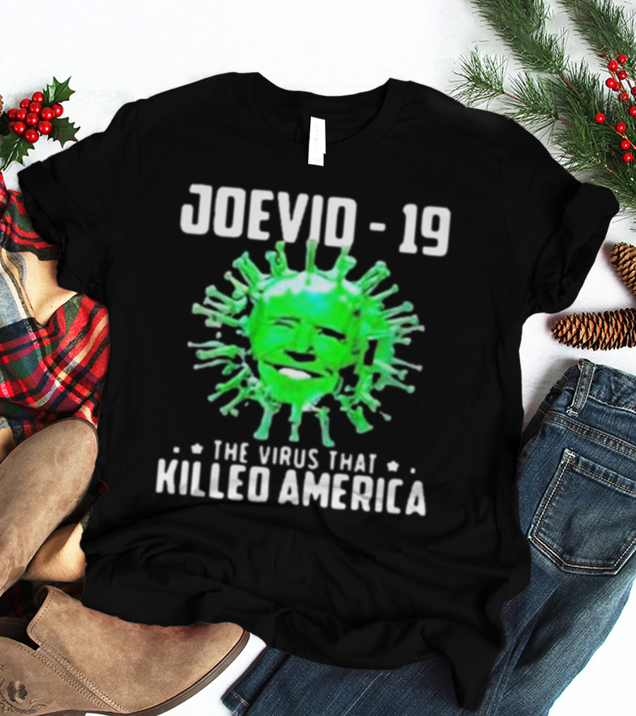 JOEVID-19 The Virus That Killed America Shirt made from 100% pre-shrunk ring-spun cotton, unisex regular fit based on U.S. standard sizing. The shirt is designed, cut, sewn, and printed in the United States. Available in sizes S-5XL.