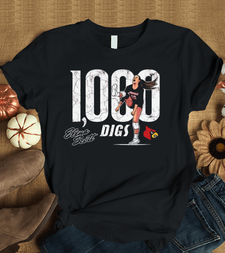 Elena Scott 1000 Digs Louisville Cardinals Volleyball Achievement T-Shirt