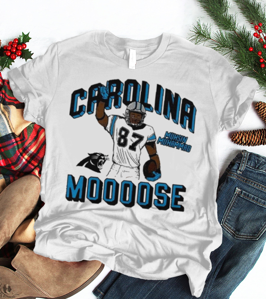 Carolina Panthers Muhsin Muhammad 87 Moooose Shirt made from 100% pre-shrunk ring-spun cotton, unisex regular fit based on U.S. standard sizing. The shirt is designed, cut, sewn, and printed in the United States. Available in sizes S-5XL.