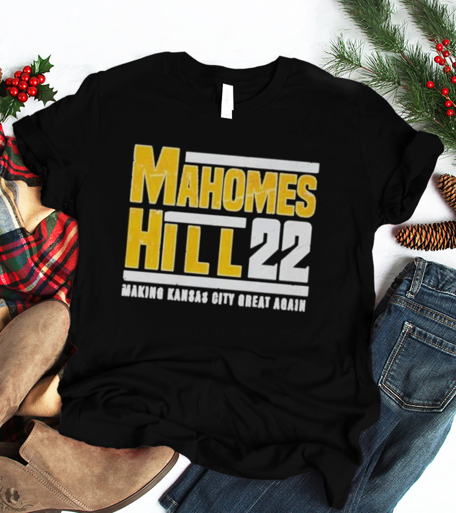 Mahomes Hill 22 Making Kansas City Great Again Shirt made from 100% pre-shrunk ring-spun cotton, unisex regular fit based on U.S. standard sizing. The shirt is designed, cut, sewn, and printed in the United States. Available in sizes S-5XL.