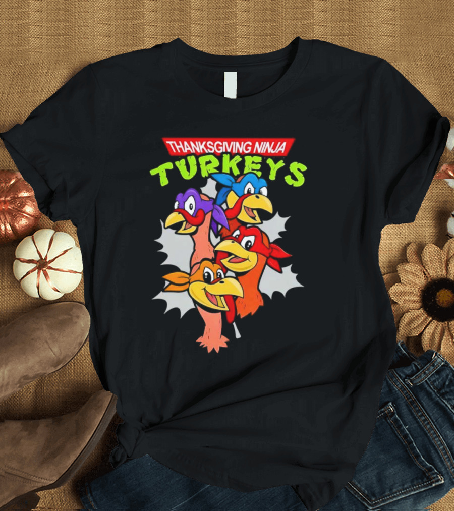 Thanksgiving Ninja Turkeys Cartoon T-Shirt