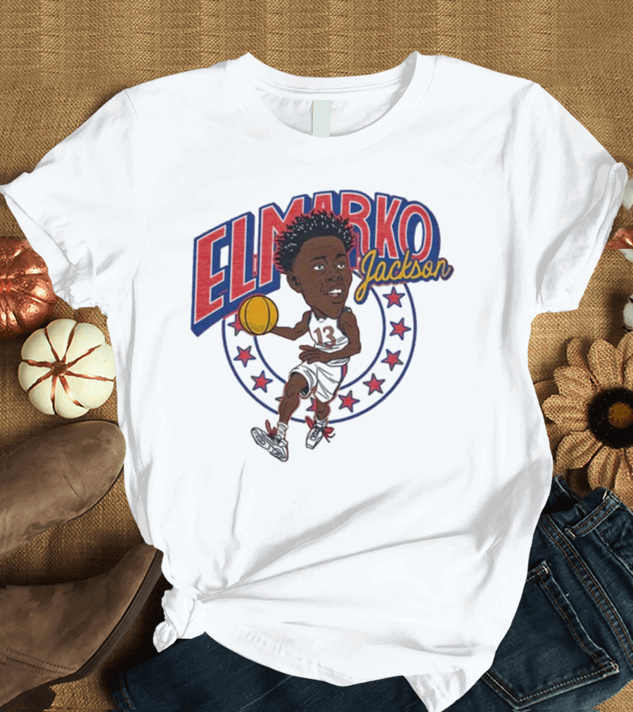 Elmarko Jackson Kansas Jayhawks Basketball Vintage Stars Shirt made from 100% pre-shrunk ring-spun cotton, unisex regular fit based on U.S. standard sizing. The shirt is designed, cut, sewn, and printed in the United States. Available in sizes S-5XL.