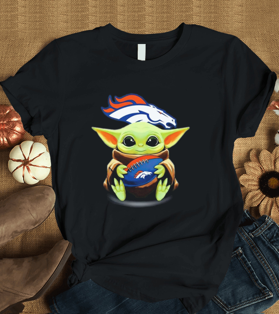 Baby Yoda Hugs Denver Broncos Football T-Shirt