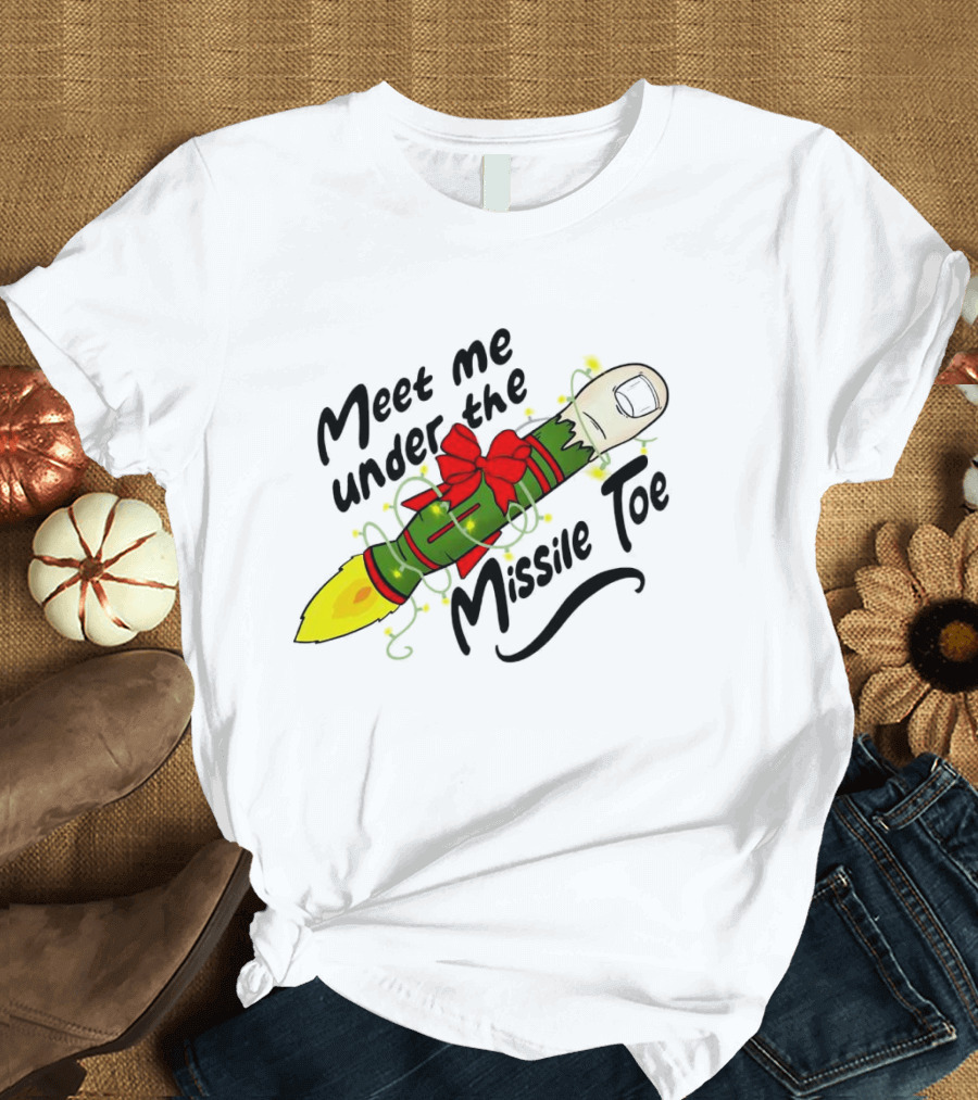 Meet Me Under The Missile Toe Rocket Holiday Pun T-Shirt