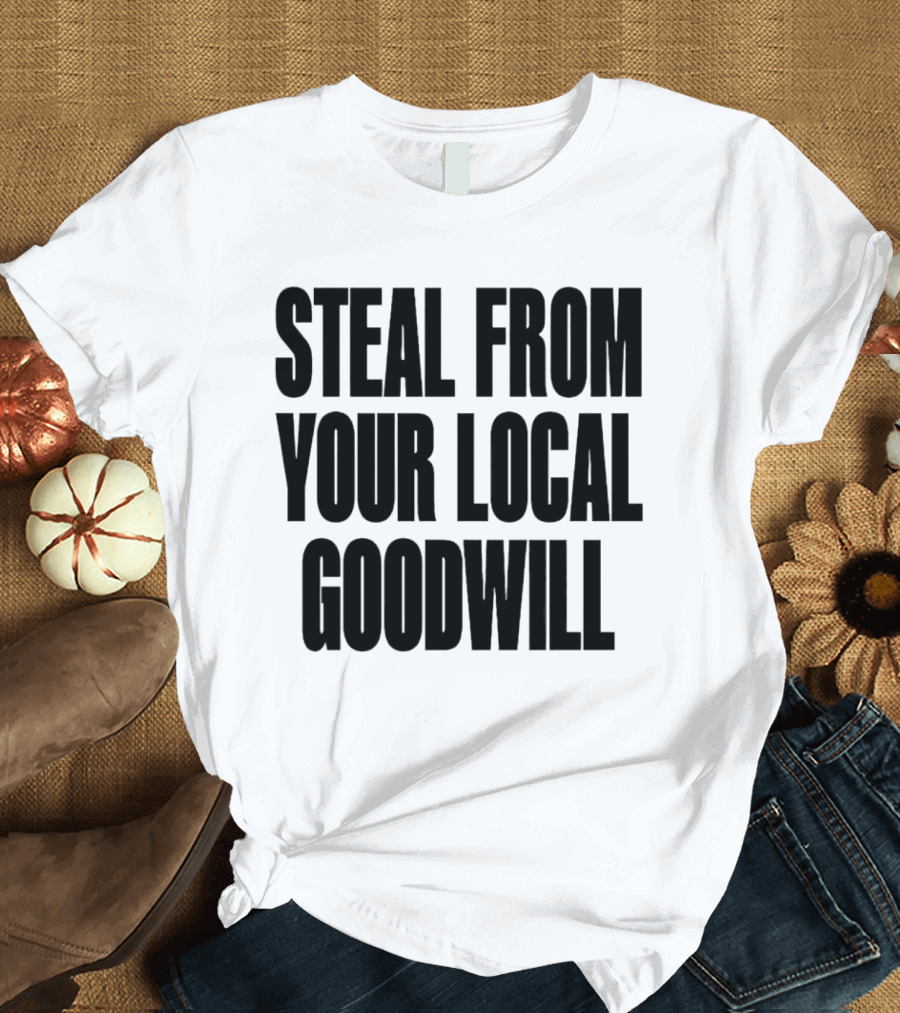Steal from Your Local Goodwill Shirt made from 100% pre-shrunk ring-spun cotton, unisex regular fit based on U.S. standard sizing. The shirt is designed, cut, sewn, and printed in the United States. Available in sizes S-5XL.