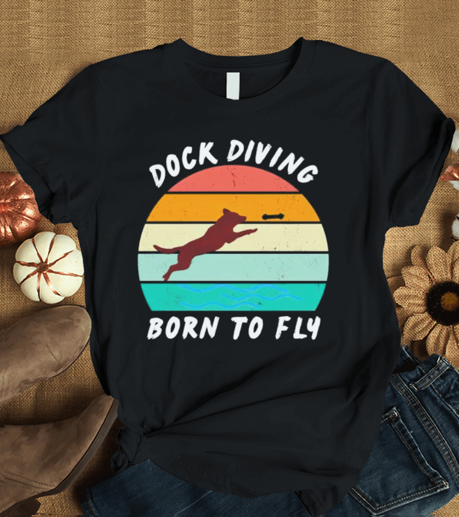 Dock Diving Born To Fly Vintage Retro Stripes Dog T-Shirt