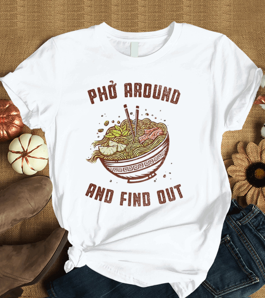 Phở Around Find Out Noodle Bowl Chopsticks Shirt made from 100% pre-shrunk ring-spun cotton, unisex regular fit based on U.S. standard sizing. The shirt is designed, cut, sewn, and printed in the United States. Available in sizes S-5XL.