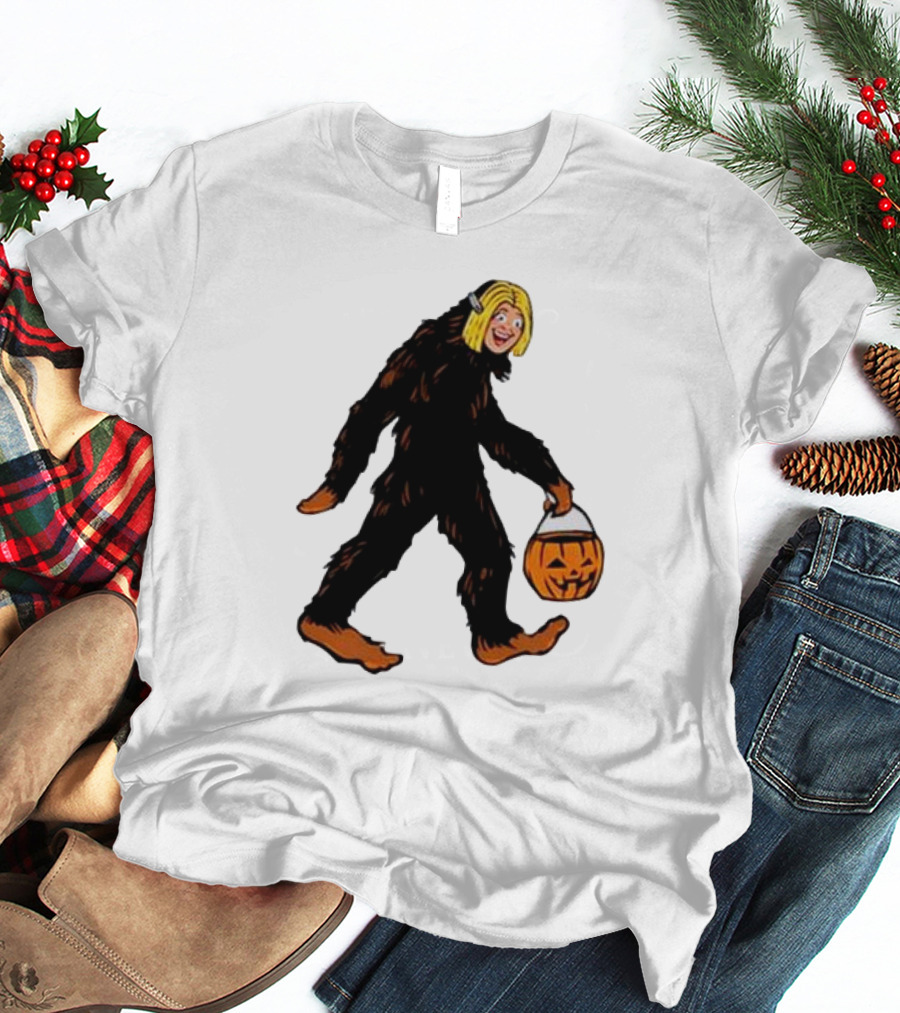 Mystical Halloween Sasquatch Holding Pumpkin Bucket Spooky Costume T-Shirt