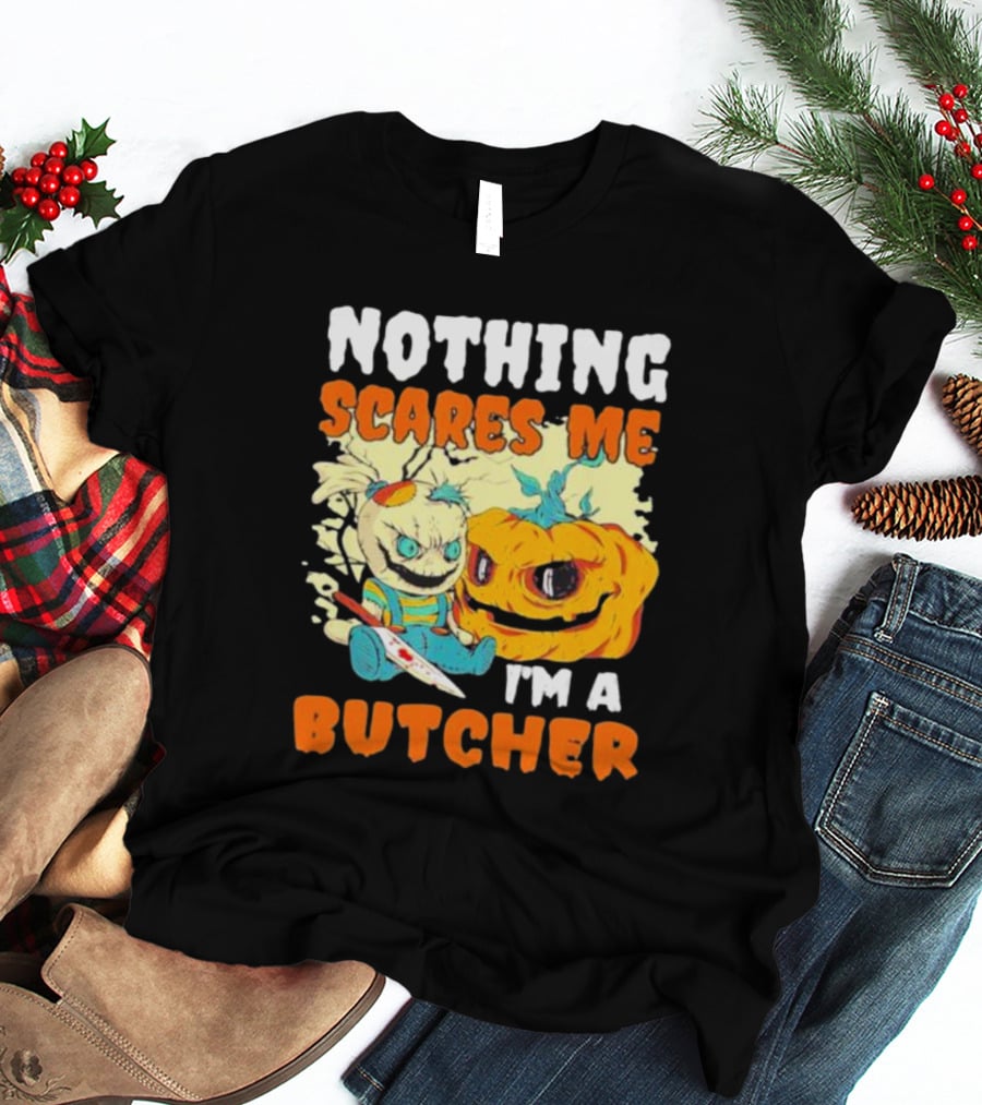 Nothing Scares Me Horror Doll With Knife And Pumpkin I'm A Butcher T-Shirt