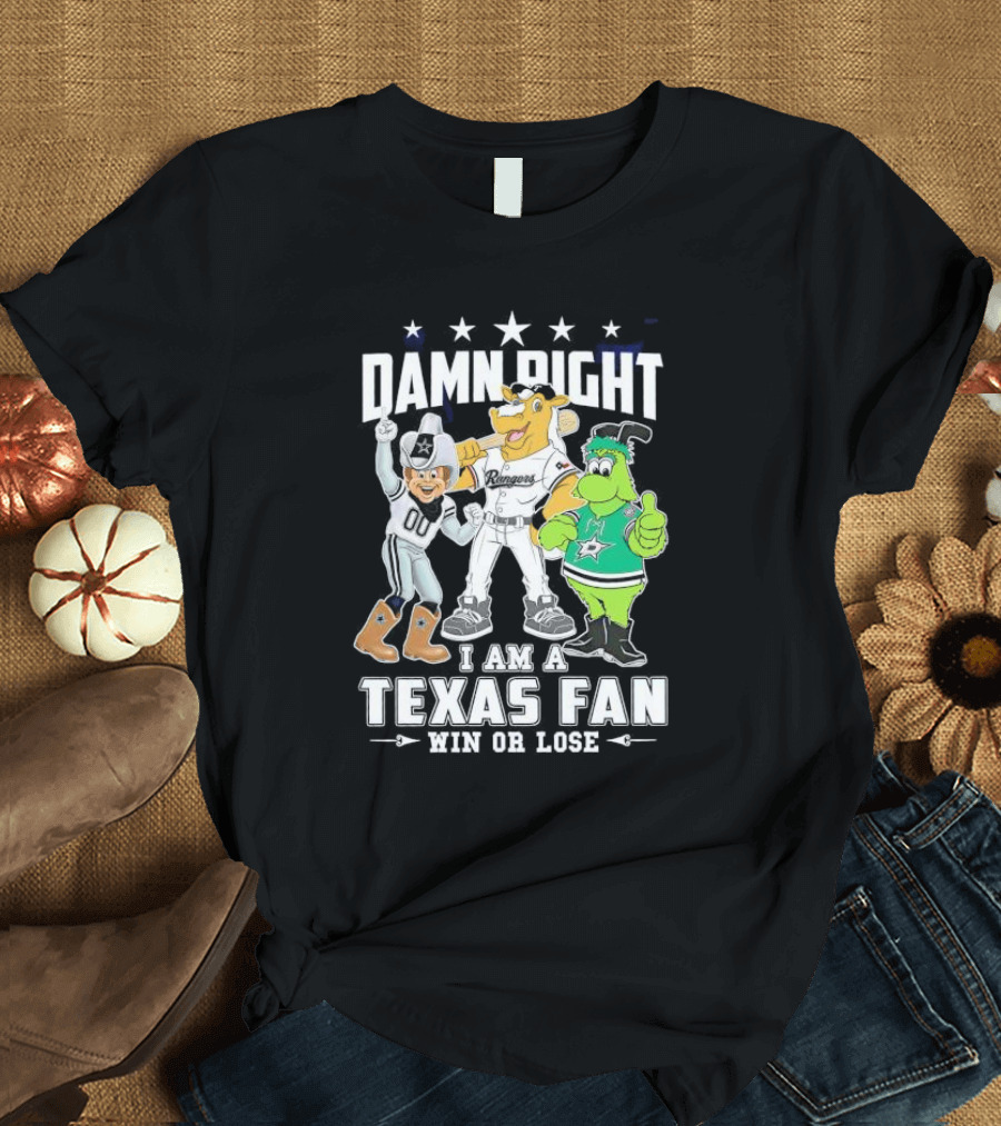 Damn Right I Am A Texas Fan Win Or Lose With Cowboys Rangers Stars Mascots T-Shirt