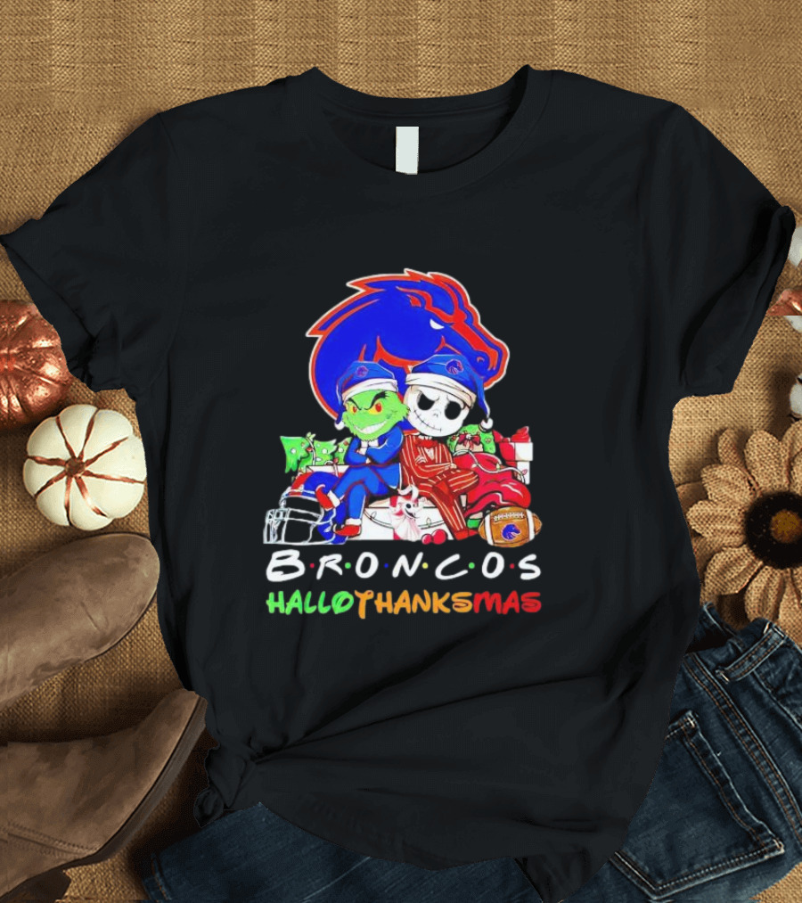 Broncos HalloThanksMas Grinch And Jack Skellington Friends T-Shirt