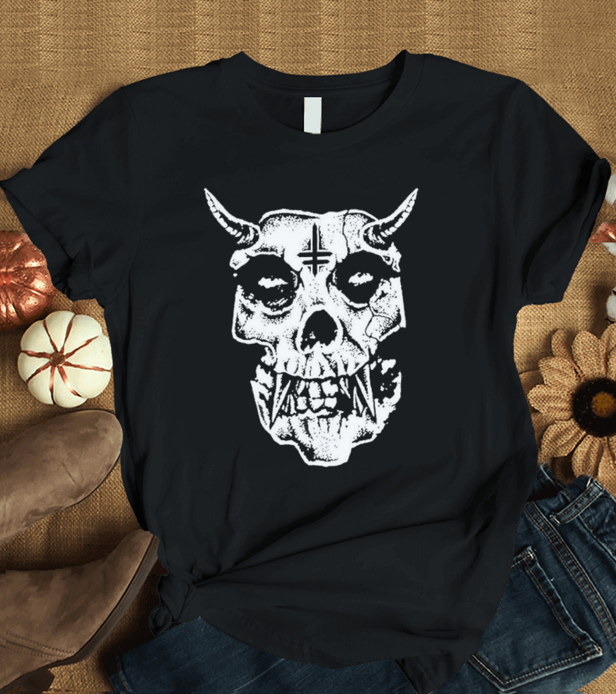 Twitching Tongues Twitchfits Sketched Skull With Horns And Inverted Cross T-Shirt