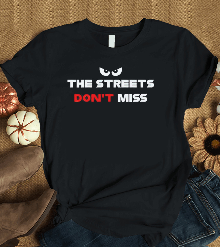 The Streets Don't Miss Eyes Emblem Shirt made from 100% pre-shrunk ring-spun cotton, unisex regular fit based on U.S. standard sizing. The shirt is designed, cut, sewn, and printed in the United States. Available in sizes S-5XL.