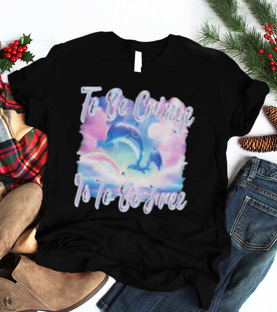 To Be Cringe Is To Be Free Fantasy Dolphin And Rainbow Sky Scene T-Shirt