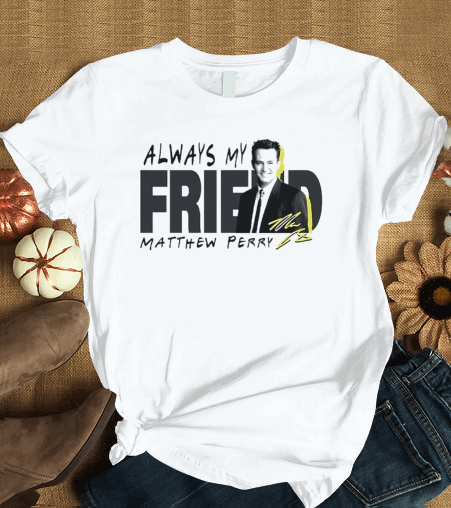 Always My Friend Matthew Perry Signature Shirt made from 100% pre-shrunk ring-spun cotton, unisex regular fit based on U.S. standard sizing. The shirt is designed, cut, sewn, and printed in the United States. Available in sizes S-5XL.