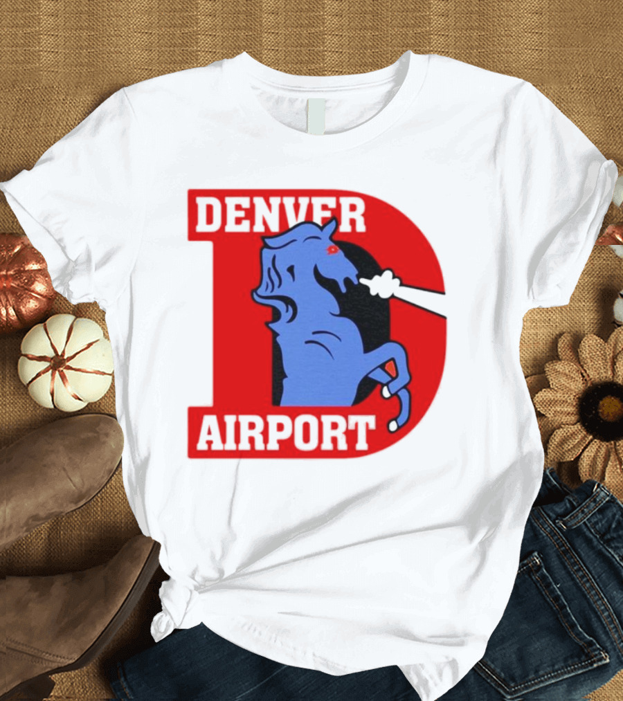 Denver Airport Blue Mustang Icon With Red Letter D T-Shirt