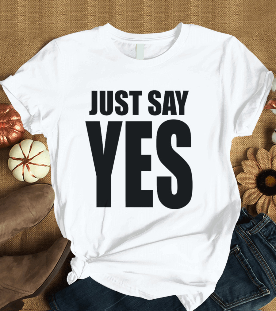 JUST SAY YES Shirt made from 100% pre-shrunk ring-spun cotton, unisex regular fit based on U.S. standard sizing. The shirt is designed, cut, sewn, and printed in the United States. Available in sizes S-5XL.