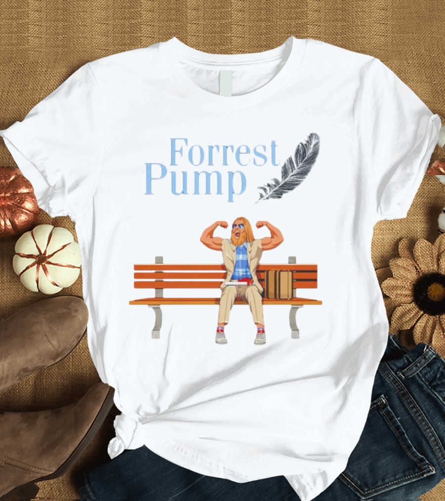Forrest Pump Sitcom Character With Feather And Bench T-Shirt