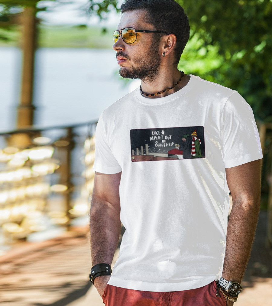 Like A Night Out In Sheffield Football Fans in Winter Gear at Stadium Shirt made from 100% pre-shrunk ring-spun cotton, unisex regular fit based on U.S. standard sizing. The shirt is designed, cut, sewn, and printed in the United States. Available in sizes S-5XL.