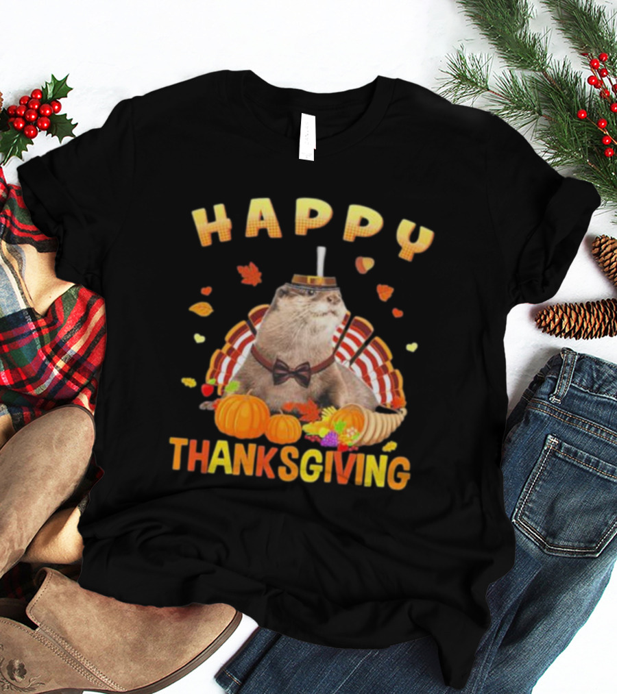 Happy Thanksgiving Otter Turkey Pilgrim T-Shirt