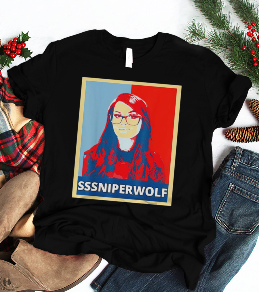 SSSniperWolf Pop Art Campaign Shirt made from 100% pre-shrunk ring-spun cotton, unisex regular fit based on U.S. standard sizing. The shirt is designed, cut, sewn, and printed in the United States. Available in sizes S-5XL.