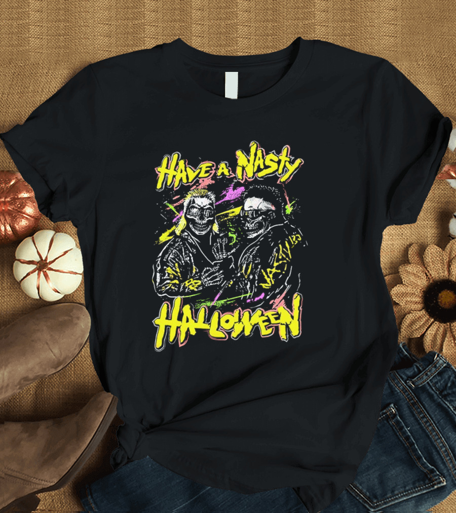 Have A Nasty Halloween Skeleton Warriors Vibrant Neon T-Shirt