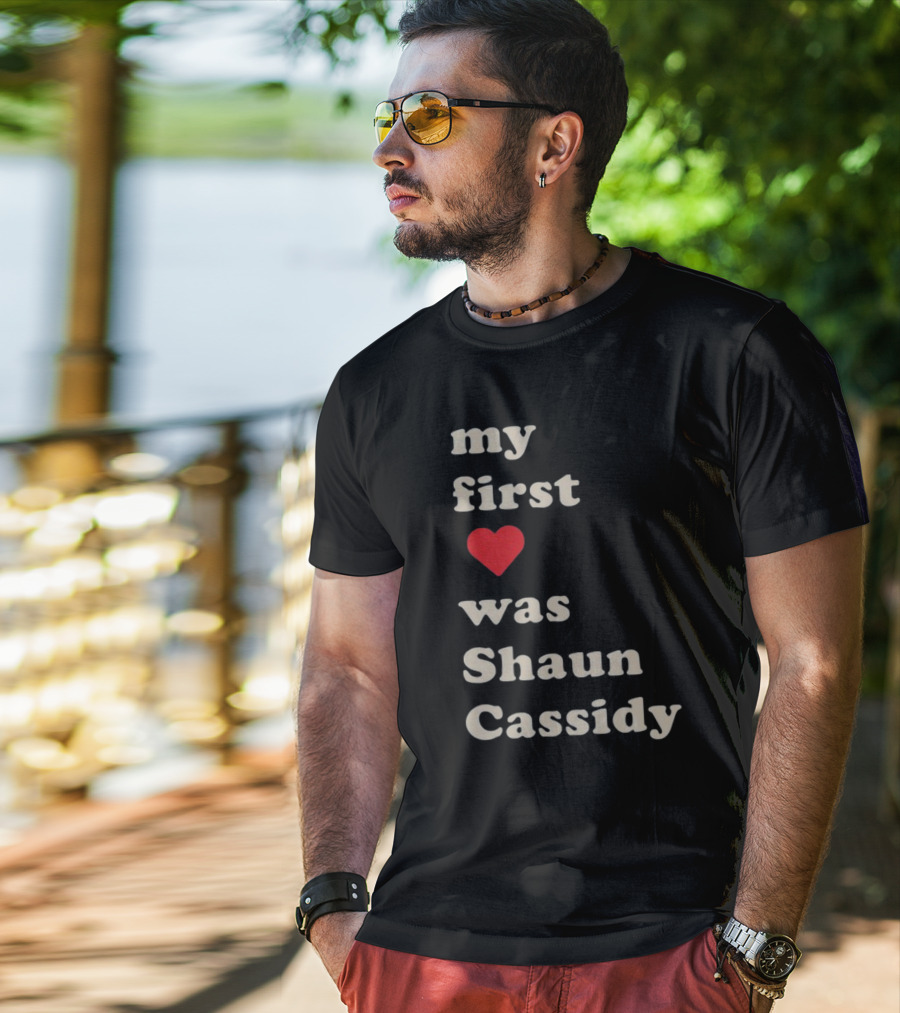My First Love Was Shaun Cassidy Shirt made from 100% pre-shrunk ring-spun cotton, unisex regular fit based on U.S. standard sizing. The shirt is designed, cut, sewn, and printed in the United States. Available in sizes S-5XL.