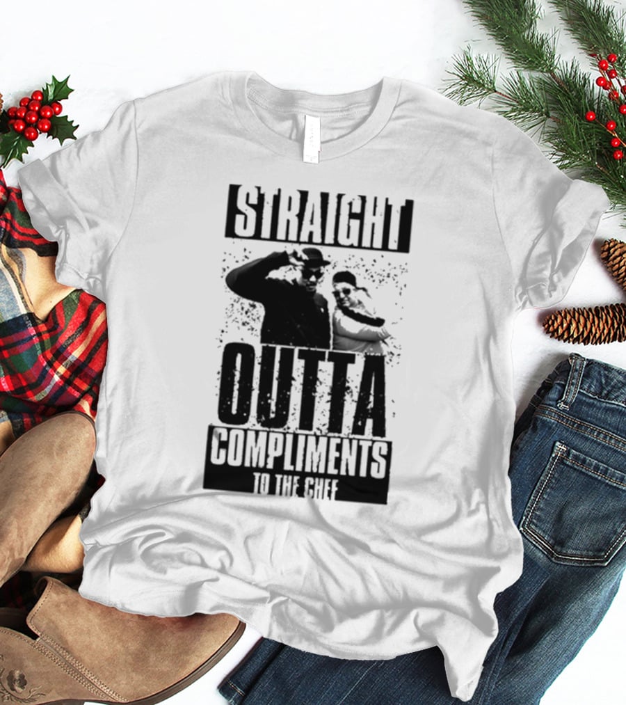 Straight Outta Compliments to the Chef Shirt made from 100% pre-shrunk ring-spun cotton, unisex regular fit based on U.S. standard sizing. The shirt is designed, cut, sewn, and printed in the United States. Available in sizes S-5XL.