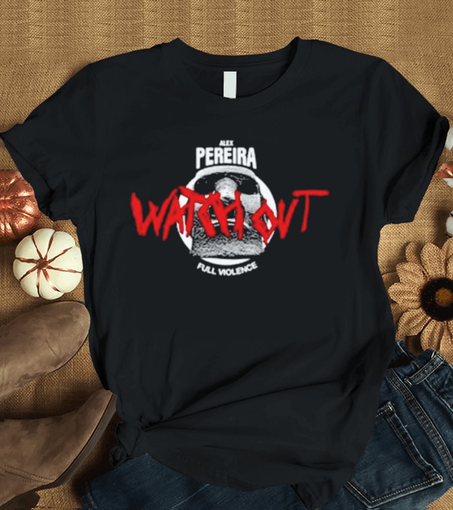 Alex Pereira Watch Out Full Violence Shirt made from 100% pre-shrunk ring-spun cotton, unisex regular fit based on U.S. standard sizing. The shirt is designed, cut, sewn, and printed in the United States. Available in sizes S-5XL.
