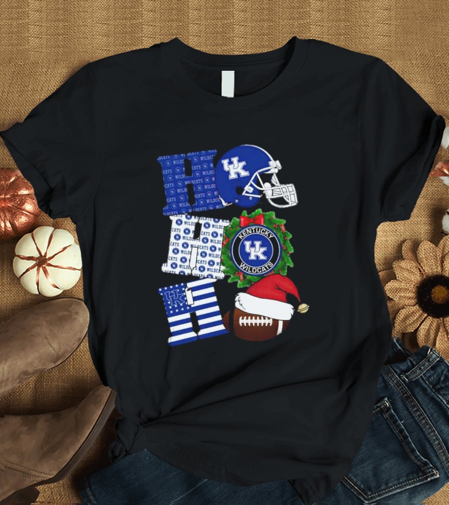 Kentucky Wildcats Ho Ho Ho Football Helmet Wreath Christmas T-Shirt