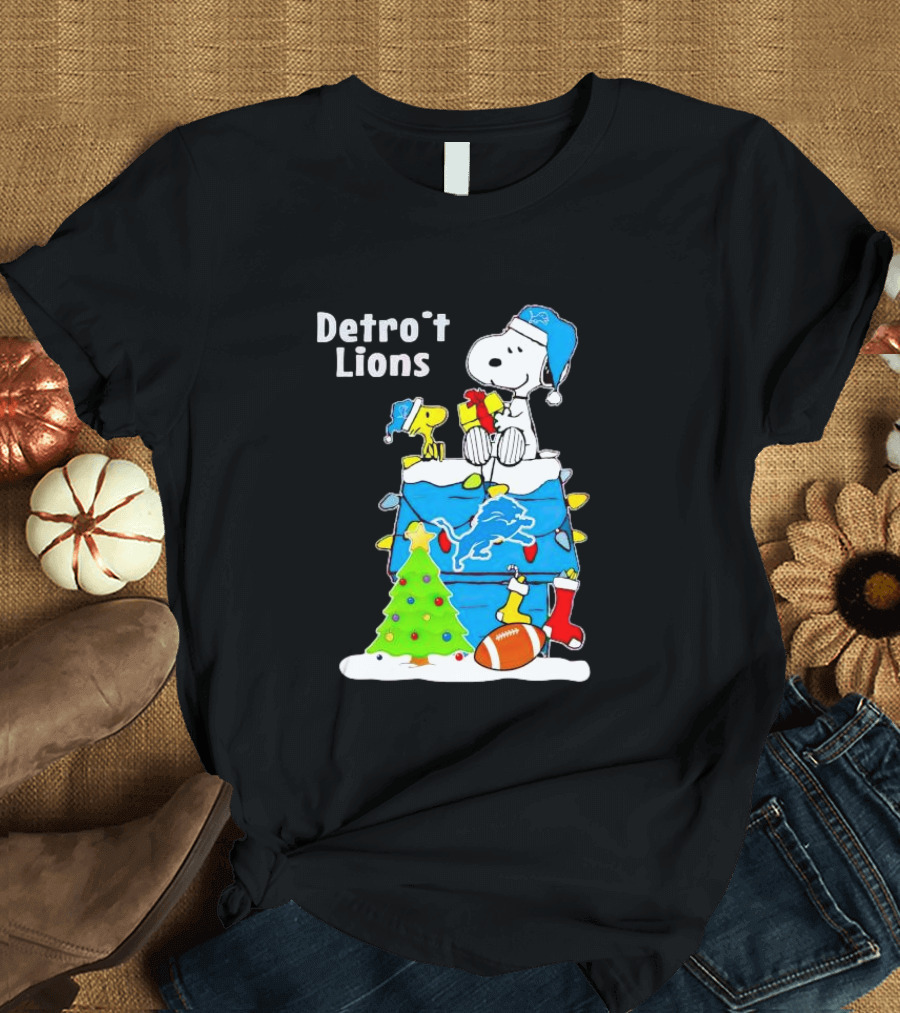 Snoopy And Woodstock Detroit Lions Christmas Igloo With Football And Tree T-Shirt