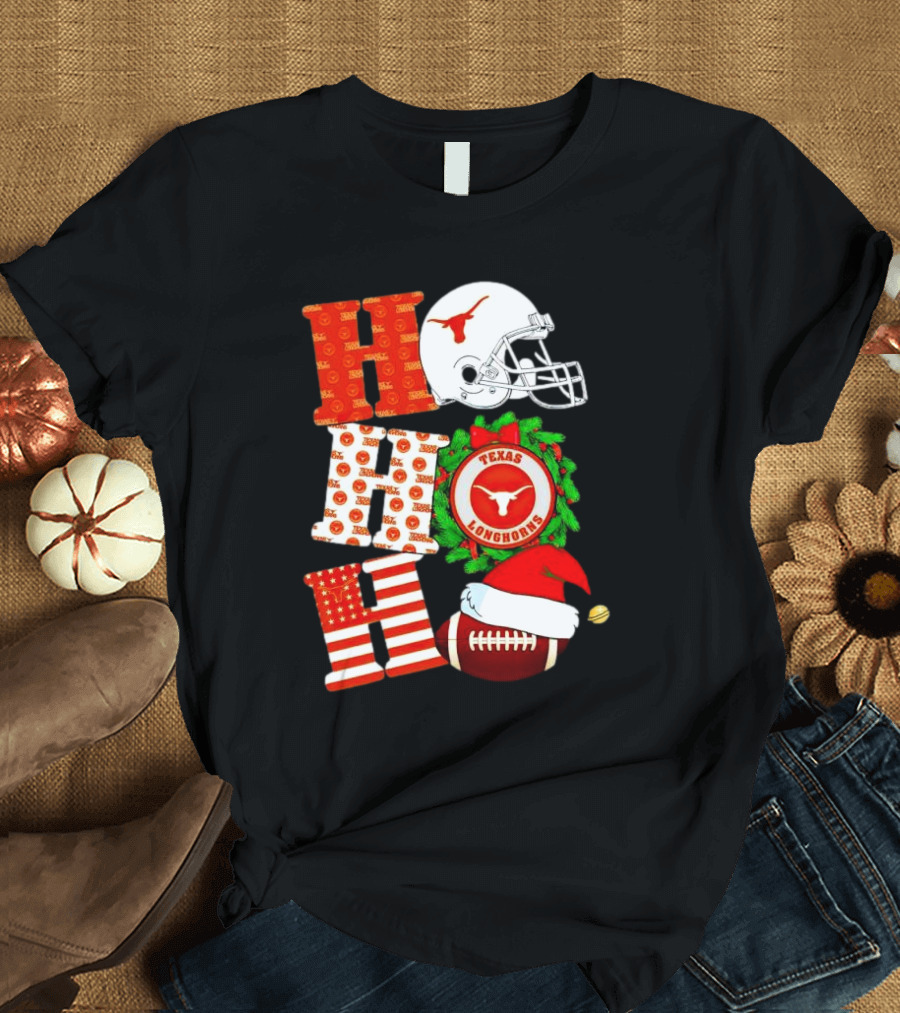 Texas Longhorns Ho Ho Ho Christmas Football Helmet Wreath Santa Hat T-Shirt