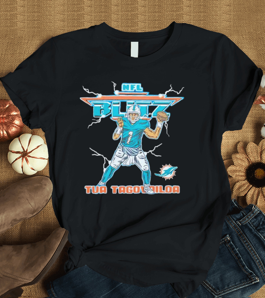 Tua Tagovailoa Miami Dolphins NFL Blitz Football T-Shirt
