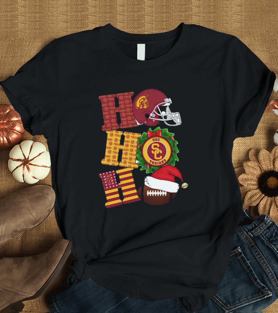 USC Trojans Ho Ho Ho Christmas Helmet Wreath Football Santa Hat T-Shirt