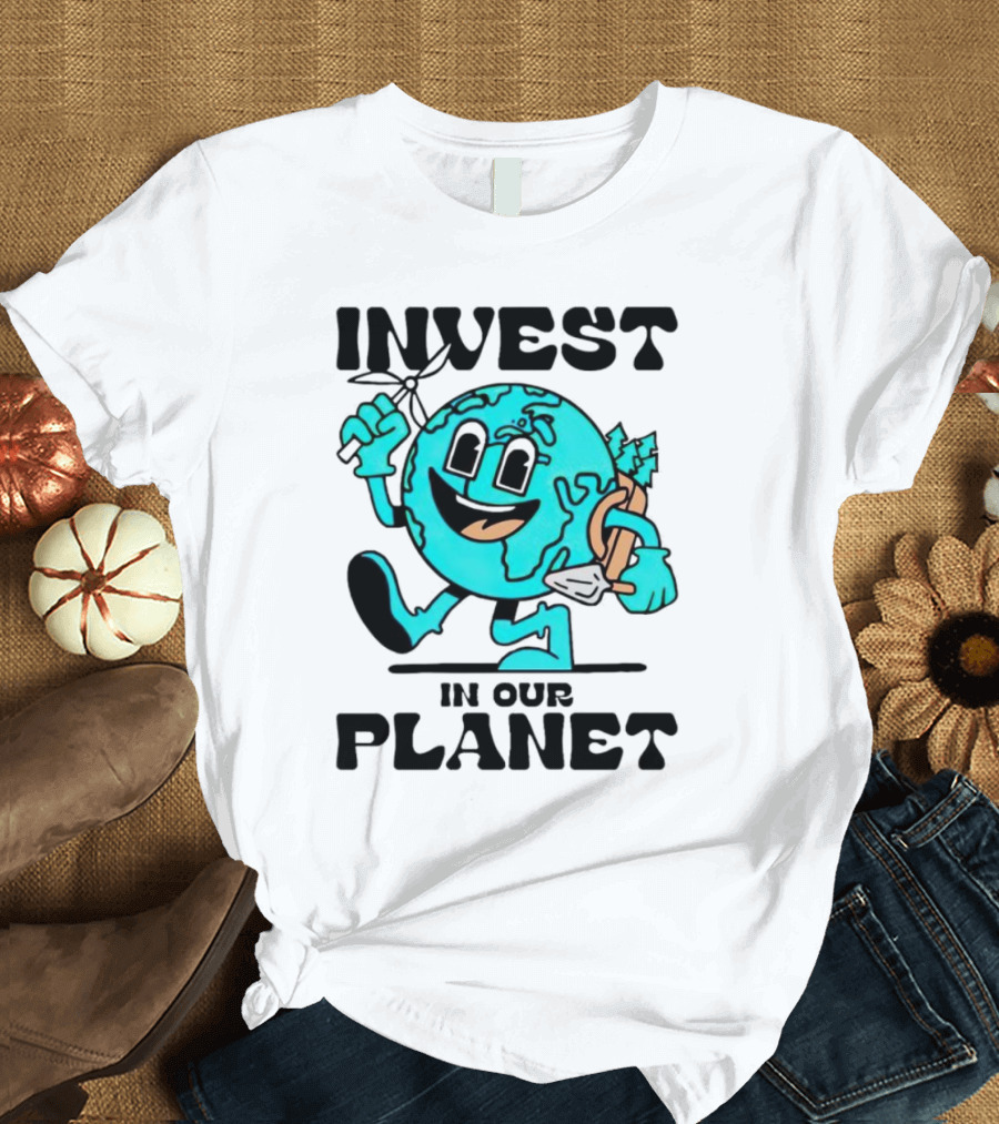 Invest in Our Planet Earth Shirt made from 100% pre-shrunk ring-spun cotton, unisex regular fit based on U.S. standard sizing. The shirt is designed, cut, sewn, and printed in the United States. Available in sizes S-5XL.