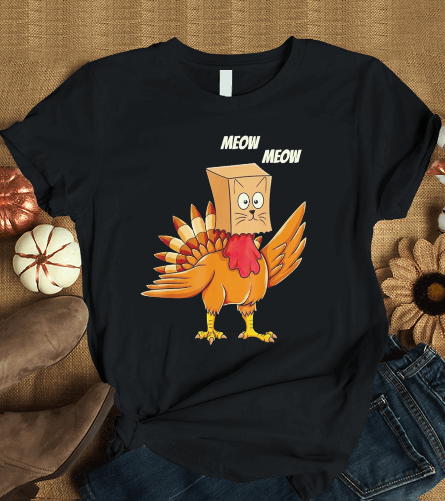 Meow Meow Turkey Cat Thanksgiving T-Shirt