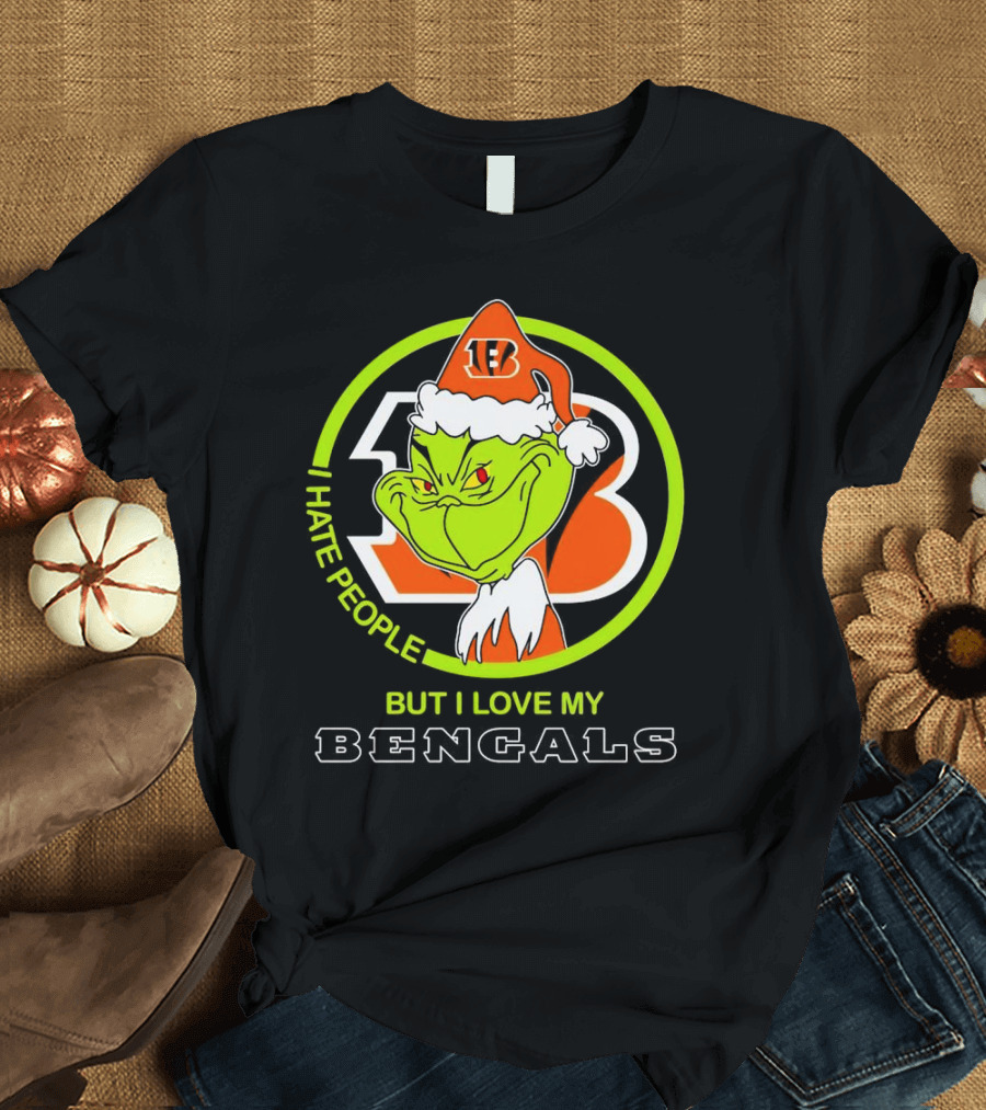 Grinch Santa Hat I Hate People But I Love My Bengals Football Fan T-Shirt