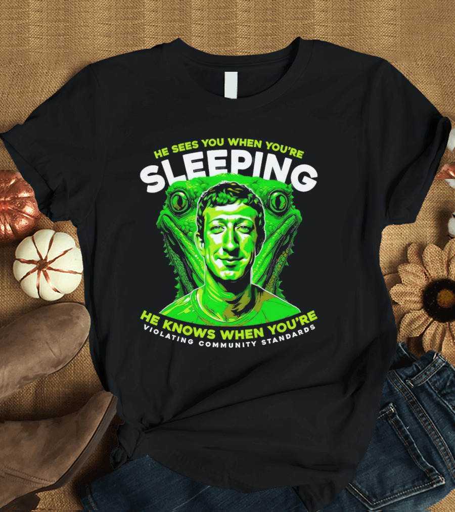 He Sees You When You're Sleeping He Knows When You're Violating Community Standards Shirt made from 100% pre-shrunk ring-spun cotton, unisex regular fit based on U.S. standard sizing. The shirt is designed, cut, sewn, and printed in the United States. Available in sizes S-5XL.