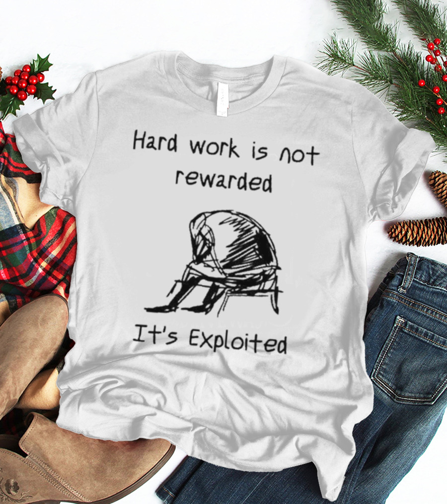 Hard Work Is Not Rewarded It’s Exploited Sketch Illustration Of Seated Figure T-Shirt