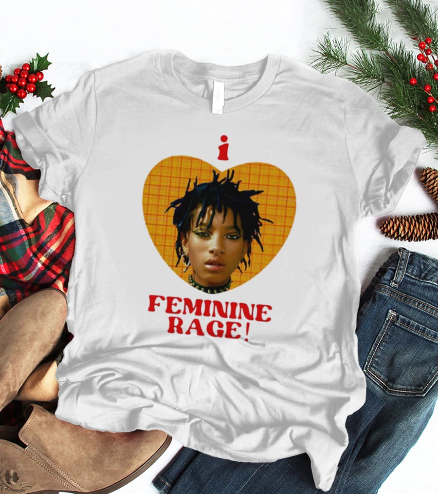 I Love Feminine Rage Shirt made from 100% pre-shrunk ring-spun cotton, unisex regular fit based on U.S. standard sizing. The shirt is designed, cut, sewn, and printed in the United States. Available in sizes S-5XL.