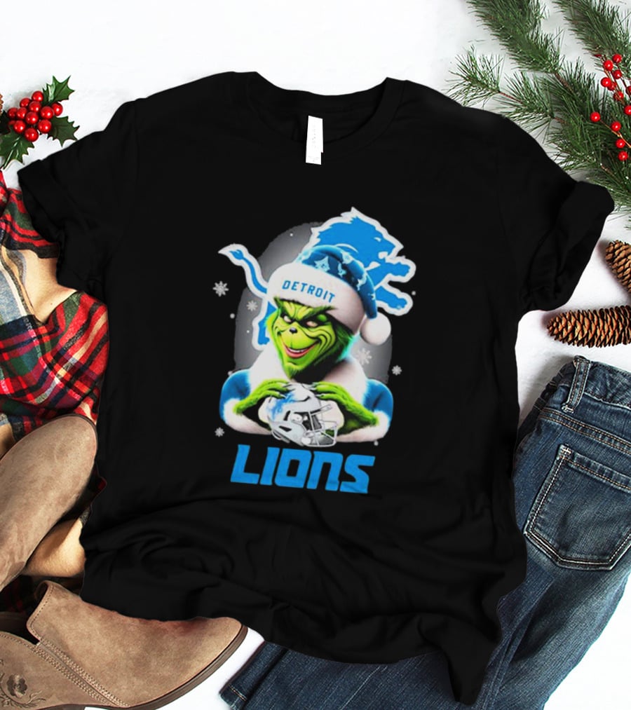 Detroit Lions Grinch Christmas Santa Snowflakes T-Shirt