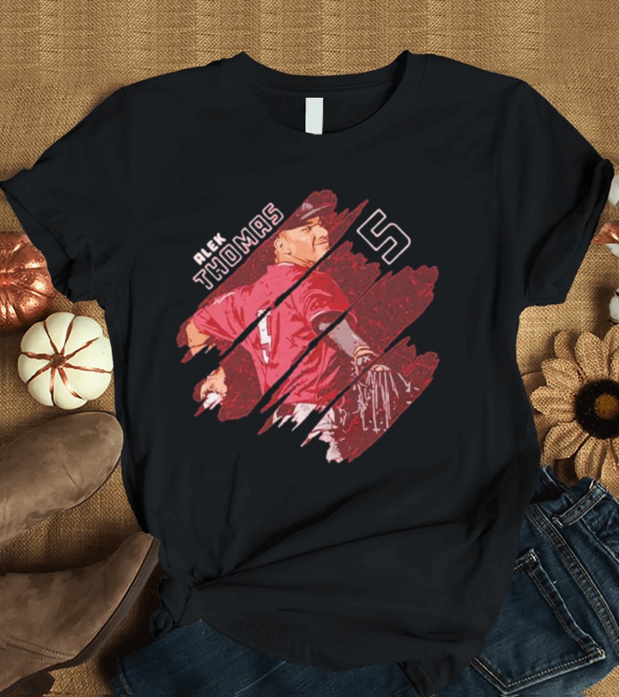 Alek Thomas Arizona WHT Baseball Stripes Number 5 Shirt made from 100% pre-shrunk ring-spun cotton, unisex regular fit based on U.S. standard sizing. The shirt is designed, cut, sewn, and printed in the United States. Available in sizes S-5XL.