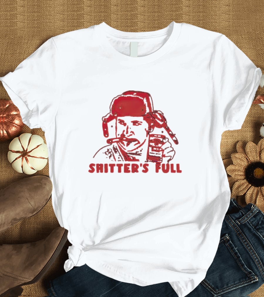 Cousin Eddie Shitter's Full Merry Christmas Beverage Shirt made from 100% pre-shrunk ring-spun cotton, unisex regular fit based on U.S. standard sizing. The shirt is designed, cut, sewn, and printed in the United States. Available in sizes S-5XL.