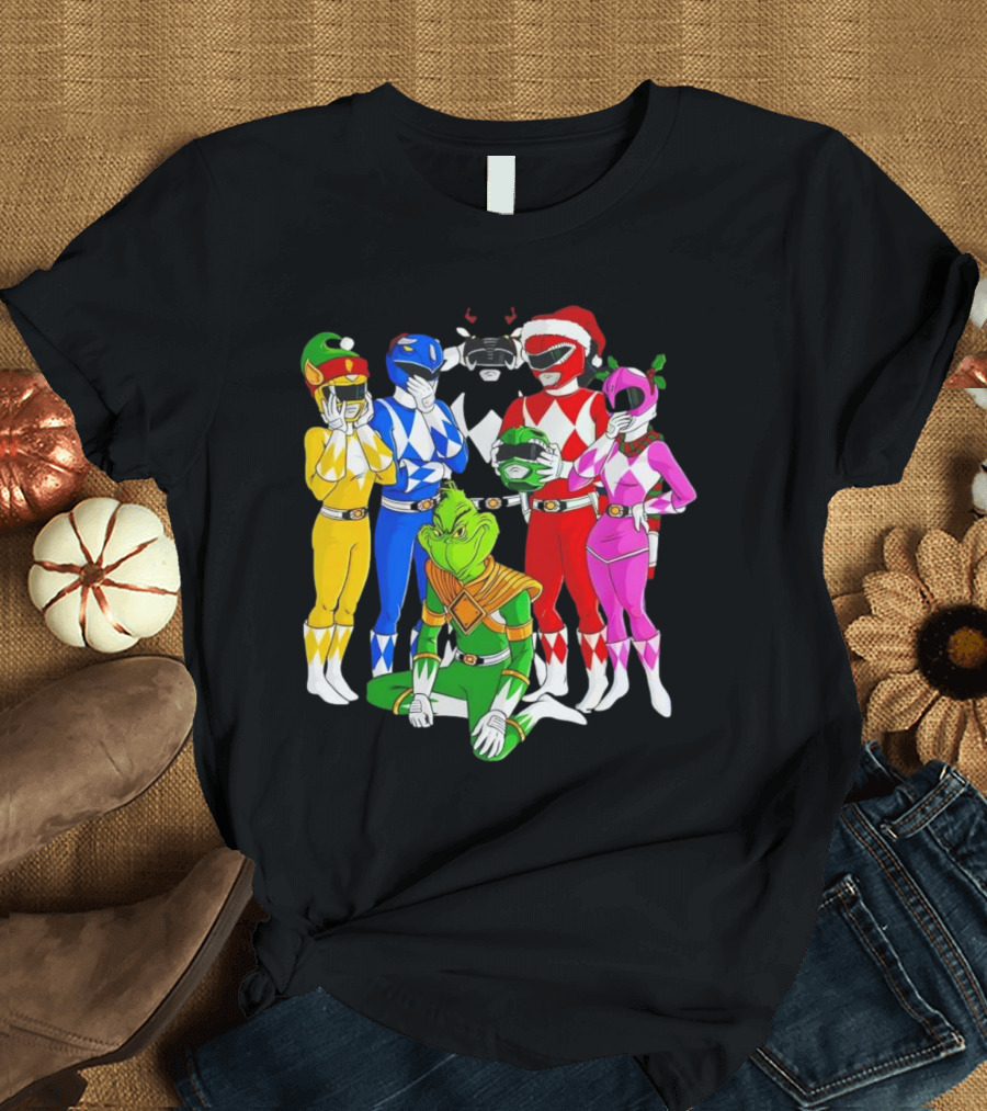 Grinch Rangers Christmas Power Shirt made from 100% pre-shrunk ring-spun cotton, unisex regular fit based on U.S. standard sizing. The shirt is designed, cut, sewn, and printed in the United States. Available in sizes S-5XL.
