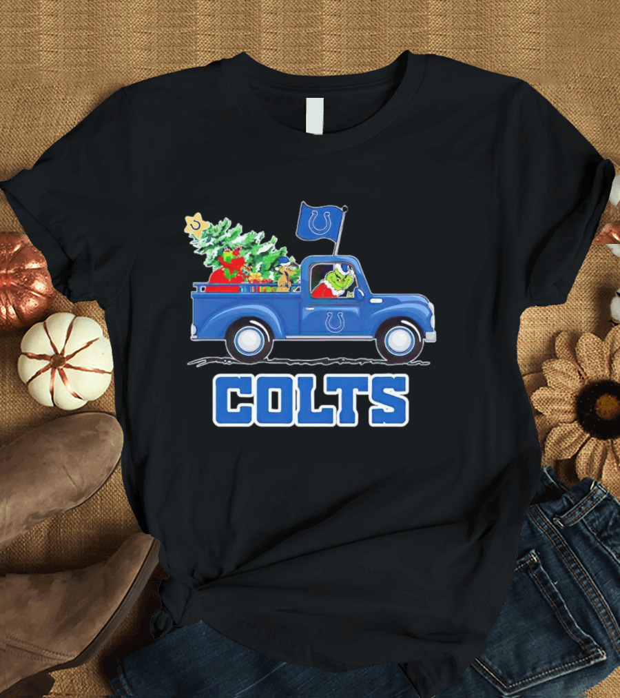 Grinch Driving Christmas Truck With Indianapolis Colts Logo And Tree T-Shirt