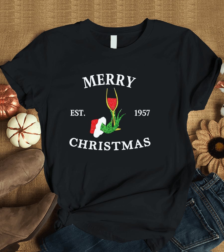 Merry Christmas Grinch Hand Wine Glass Est 1957 T-Shirt
