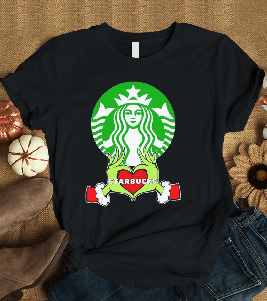 Grinch Hands Holding Heart Starbucks Christmas T-Shirt