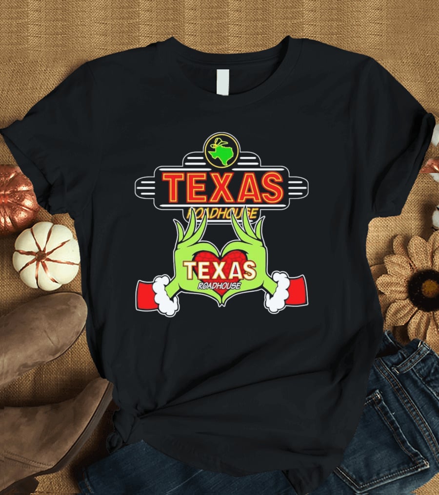 Grinch Hands Holding Heart Texas Roadhouse Christmas T-Shirt