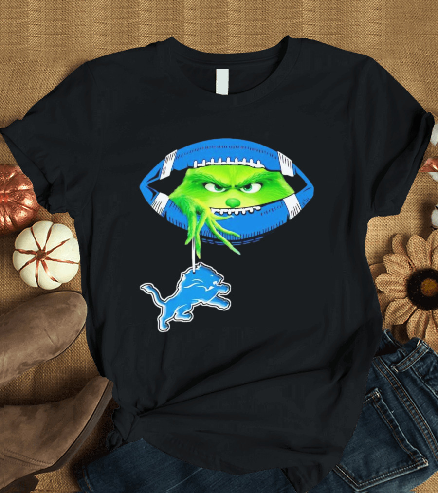 Grinch Sneak Peek Detroit Lions Christmas Football T-Shirt