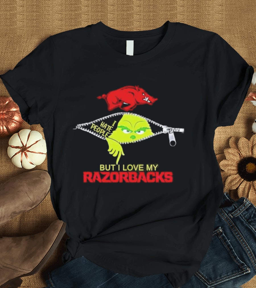 Grinch Zipper I Hate People But I Love My Razorbacks Arkansas Razorbacks T-Shirt